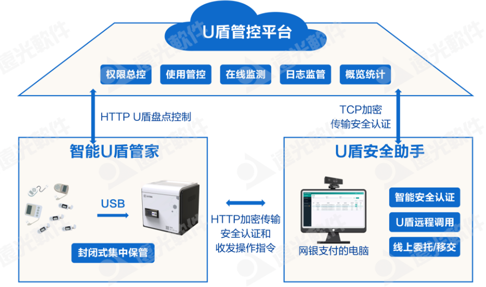 基于以上問題,遠光軟件推出了全新的U盾安全管控一體化解決方案,通過智能U盾管家、U盾管控平臺、U盾安全助手軟硬一體化的應用,對企業各類銀行U盾進行封閉保管、線上授權、安全認證、遠程調用、實時監控、追蹤及統計,實現了企業U盾“存放-使用-簽退”全鏈路線上閉環管理,提升U盾保管及使用的安全性,保障企業資金管理安全。