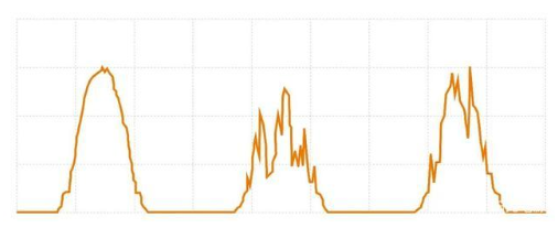 圖2為海外某200MW電站三天的實際發(fā)電曲線,電站采用1.42倍容配比+跟蹤系統(tǒng)設(shè)計。電站逆變器從早上8點到下午5點一直處于滿功率運行狀態(tài),相較于圖1,該電站發(fā)電曲線幾乎呈平直狀態(tài),即使光照出現(xiàn)一定程度的波動,逆變器輸出功率也只是出現(xiàn)微小變化,整個電站的輸出更加穩(wěn)定。