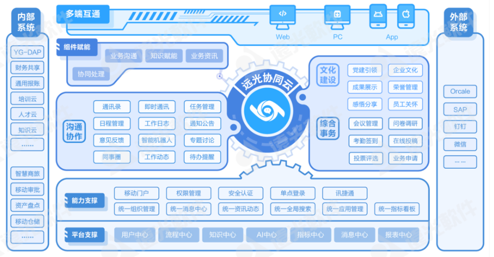 遠光協同云:社交賦能,鍛造高效協同財務人才隊伍以移動端協同為核心,融合內外部應用,打造智能化辦公平臺,構建社交化、移動化、云化、智能化的協作創新生態圈。