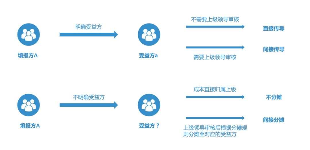 2、支持四種業務傳導方式按照業務活動審核流程和內部成本還原方式的不同,提供四種成本傳導方式。
