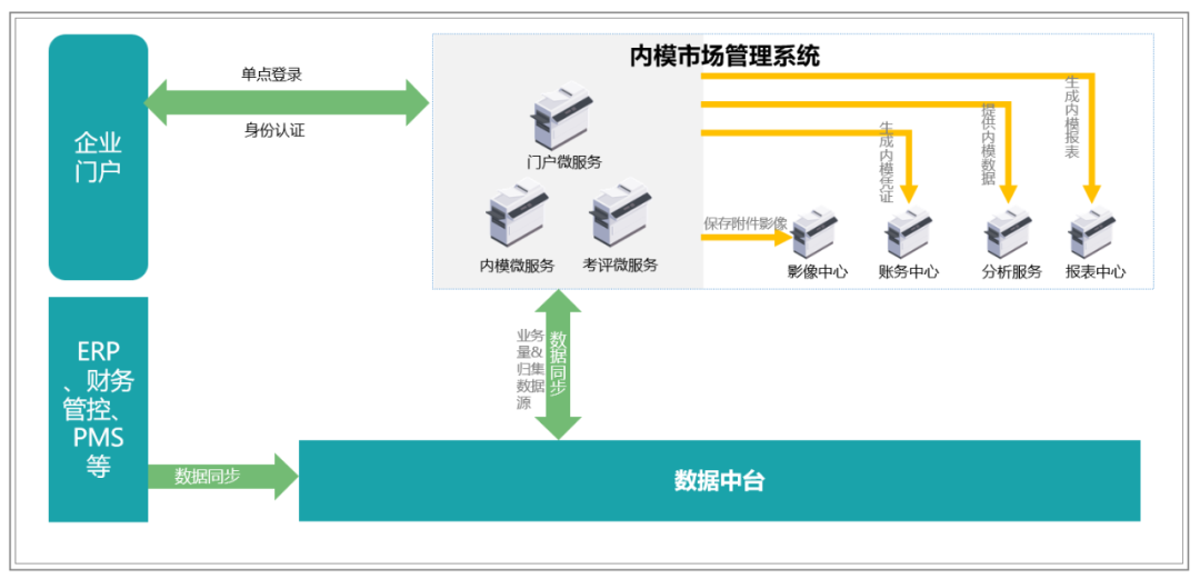 遠光內模市場管理系統基于 Spring Cloud 微服務架構打造,采用云數據庫,適配阿里云、華為云、騰訊云原生服務組件。從集成架構可以看出,整個內模市場管理系統是獨立的基于中臺構建的一套系統,通過企業門戶登錄進入,和中臺進行數據交互,通過數據中臺將業務數據集成到內模微服務、考評微服務、門戶微服務中。同時,內模市場管理系統還與遠光軟件的報表中心、影像中心等產品模塊聯合部署,自動生成模擬利潤表等內模管理報表,為企業經營管理提供決策支撐。