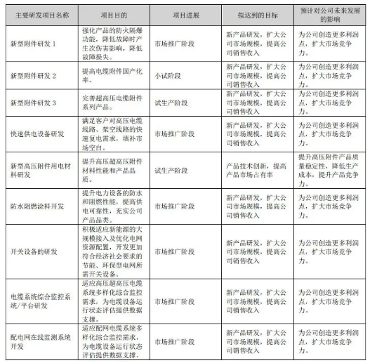 未完待續,下期繼續刊發有關電纜附件類公司研發計劃。