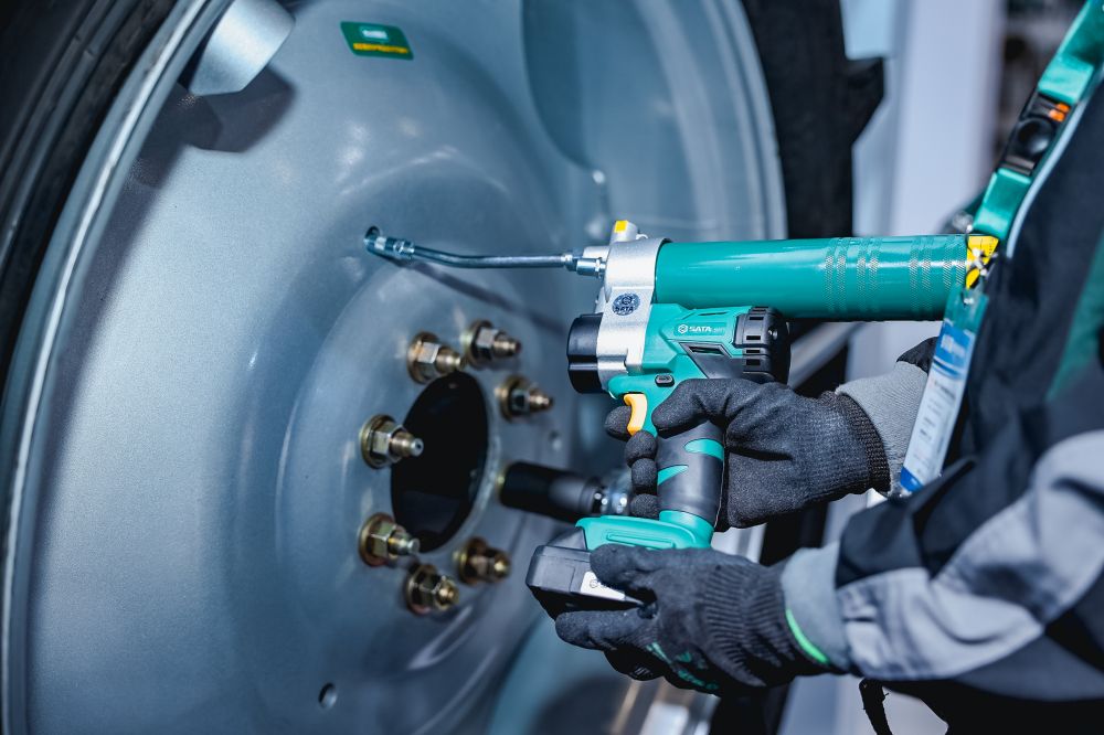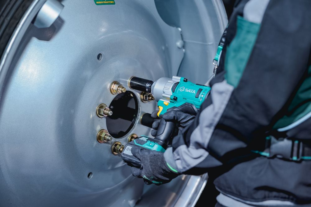 輪胎拆裝需求在大型工程機械(如挖掘機、裝載機、推土機等)維修過程中十分常見。因此,SATA世達提供全面解決方案:51075 J系列18V鋰電無刷沖擊扳手用于預擰緊,配合扭力扳手完成輪胎安裝;鋰電黃油槍可用于潤滑保養;工具車配備維修組套,滿足絕大部分維修需求場景。