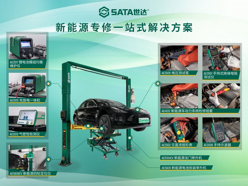 自2017年以來,SATA世達全品一站式解決方案,解決了用戶汽車維修保養的基本需求。而在新能源汽車崛起的現在,SATA世達更是緊跟行業步伐,推出了新能源汽車專屬解決方案,全套的新能源維修設備為用戶創造更高價值。