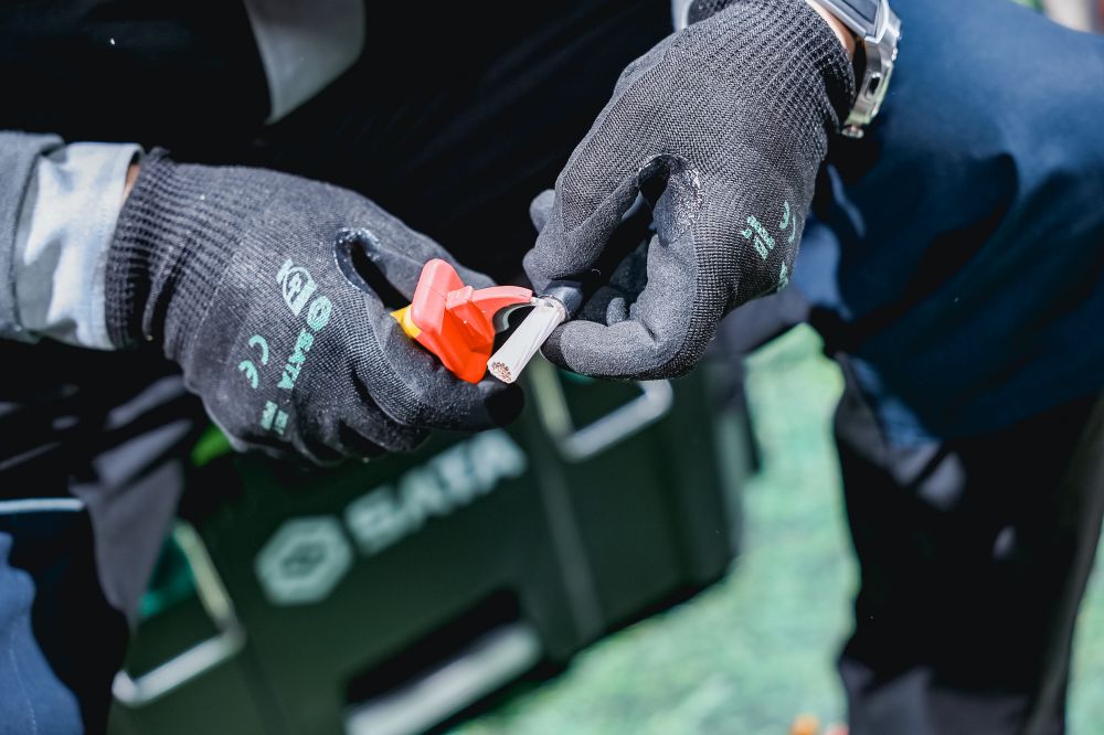 現場電力電網行業常見的配電箱模擬設備,吸引不少客戶前來體驗SATA世達萬用表等儀器儀表設備檢測電流和電壓。除此以外,為了解決行業內常見的戶外作業需求,VDE組套、電纜剪、剝線鉗和安全帽、絕緣安全鞋均有配備。