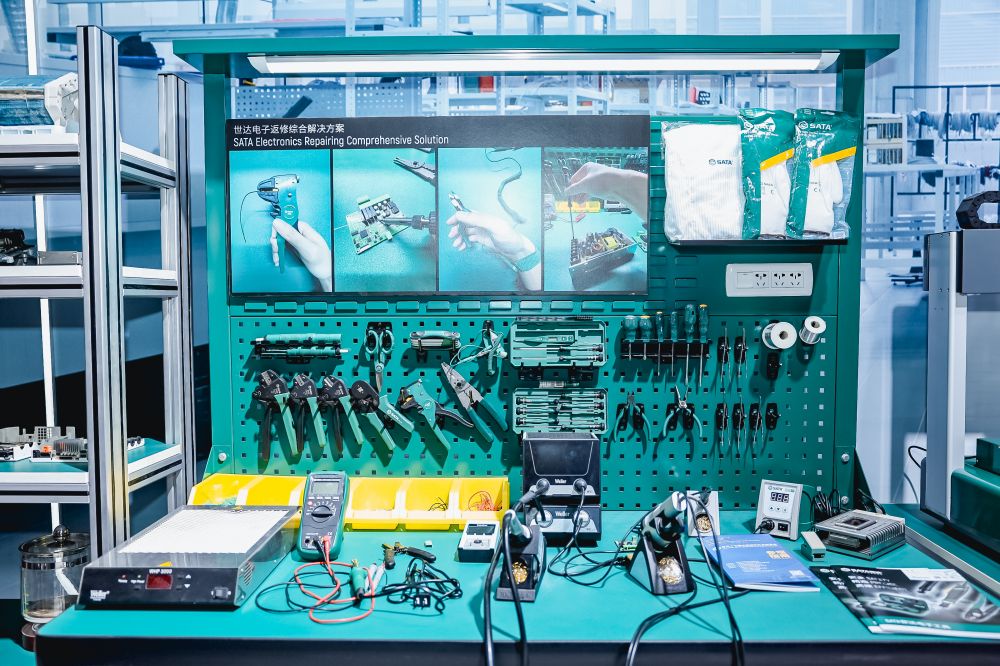 3) SATA世達電子綜合返修方案,搭配錫絲手工焊臺,微型夾持鑷子,各規格剝線壓接鉗,專用電子微型螺絲刀,高精度電表等,可應對各種產品返修檢測需求。