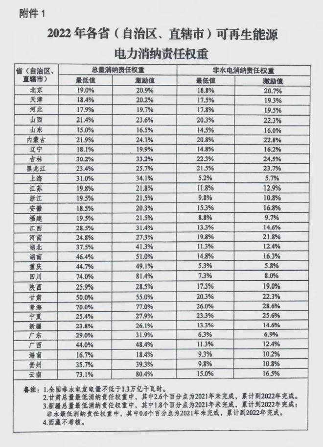 日前,國家發改委和國家能源局又聯合發布《關于2022年可再生能源電力消納責任權重及有關事項的通知》,明確各省2022年可再生能源電力消納責任權重以及2023年再生能源電力消納責任權重預期目標。