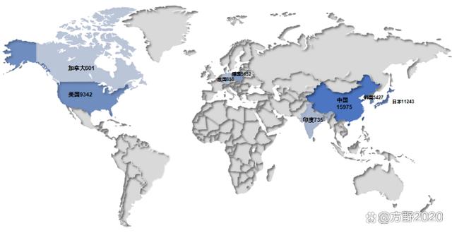 在過去20年間,車用氫能專利區域分布如圖5所示。中國、日本和美國在車用氫能技術領域擁有較高的專利申請量,是當前全球范圍內較有技術競爭力和市場競爭力的地區國家。