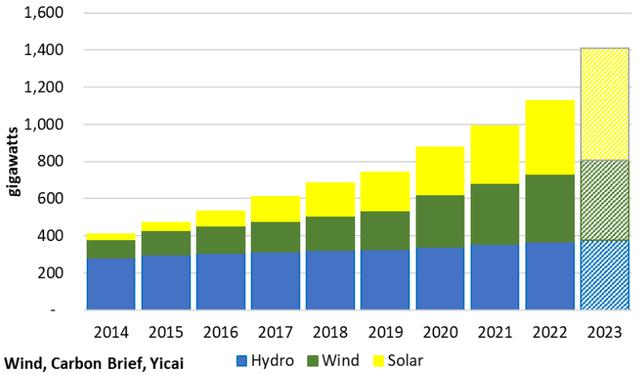 除了太陽能和風能發電能力的大幅提升,碳簡報認為,中國的發電能力將受益于水電的回升。熱浪和干旱在2022年8月和今年7月降低了水力發電量,但這些因素未來一段時間內不會再困擾水電。有跡象表明,水庫水位已升至歷史平均水平,且目前的厄爾尼諾周期表明,直到明年2月份,降雨量都將高于平均水平。此外,2022年初至2023年9月,水電裝機容量增加了7%,這將進一步提高這種綠色能源對于滿足中國能源需求的貢獻。
