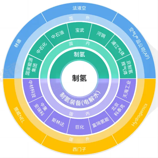 可再生能源電解水制氫是目前綠氫的最主要生產方式,電解槽是生產綠氫的關鍵部件,因此綠氫產能布局現階段可體現為電解槽產能布局。