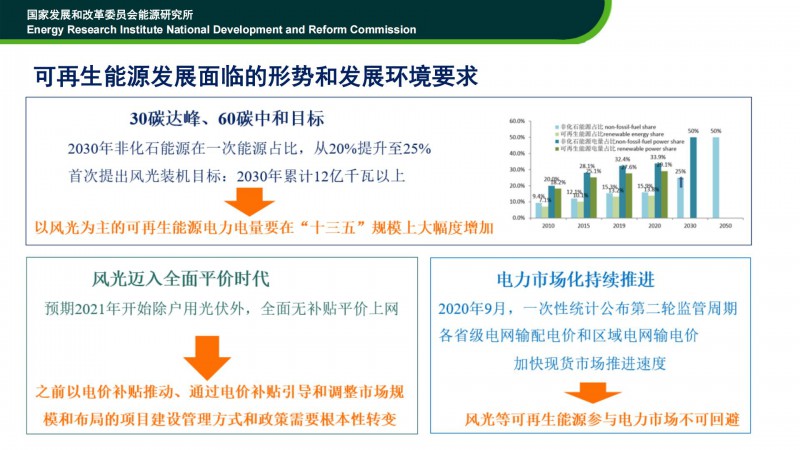 時璟麗老師在“2021光伏領袖大會”上的發言稿。時老師認為:可再生能源要在能源轉型中發揮重要作用。2050年,中國要建成高比例可再生能源電力系統。其中,非化石能源占比將達到91%,風電、光伏占比將達到73%!未來可再生能源的發展,從資源、技術、產業、經濟性角度,均不存在瓶頸與障礙!