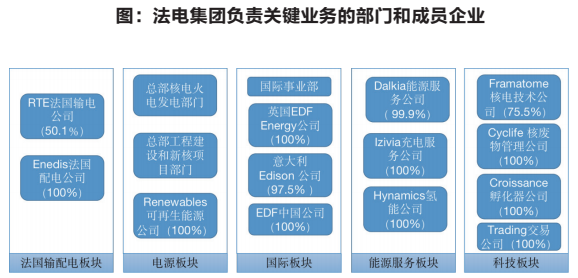 戰(zhàn)略決定組織變革,組織支撐戰(zhàn)略落地。目前法電負(fù)責(zé)關(guān)鍵業(yè)務(wù)的成員企業(yè)和部門(mén)可以歸納為五大板塊,如下圖所示。