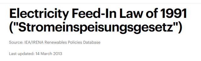 在此之前的1991年,德國已經通過了《上網電價法(Stromeinspeisungsgesetz)》,推行可再生能源的補貼計劃。