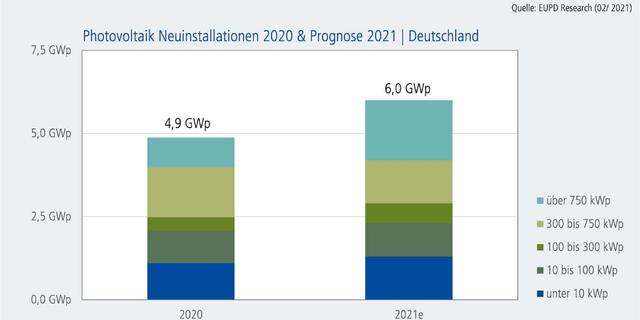 據《光伏》雜志,2021年,德國新增超過5GW光伏裝機,較上年增長20%,這使得德國光伏的總裝機量達到了59GW,超過了該國陸上風電的裝機容量。