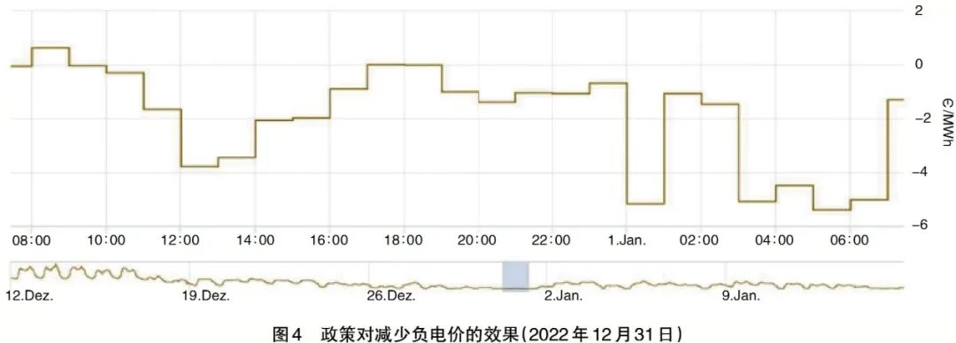 到2023年初,為避免負(fù)電價(jià)超過規(guī)定時(shí)間,可再生能源運(yùn)營商開始采取預(yù)防性減少發(fā)電量,以免失去市場(chǎng)和管理補(bǔ)貼。這一現(xiàn)象進(jìn)一步證實(shí),政策的靈活性對(duì)于減少負(fù)電價(jià)起到了明顯的作用(詳見圖4)。