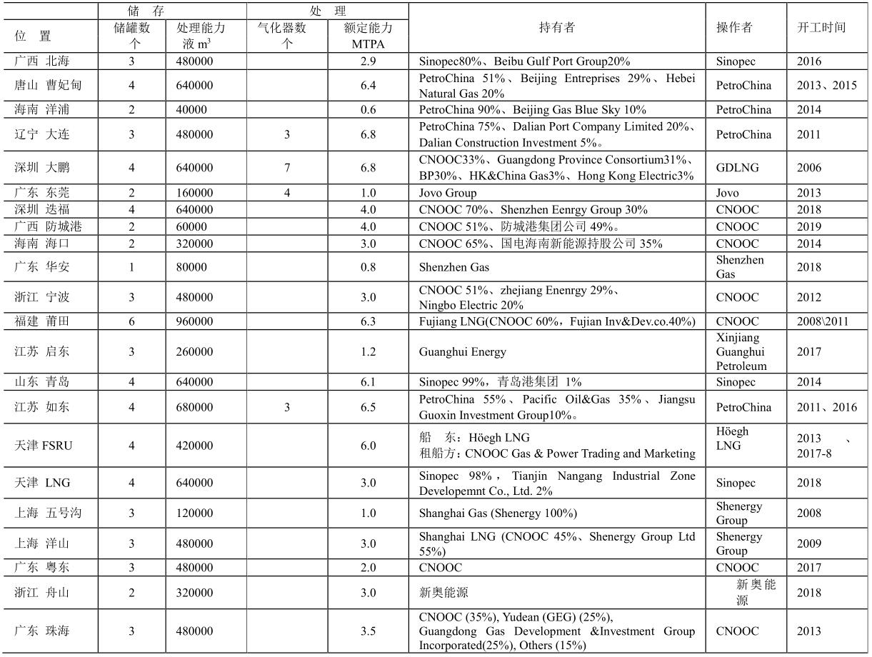 中國兩個新的再氣化終端于2019年開始商業運營。2019年1月,防城港液化天然氣啟動,其額定氣化能力為0.6 MTPA ,深圳天然氣碼頭(氣化能力為0.8 MTPA ),8月收到第一批商品LNG。