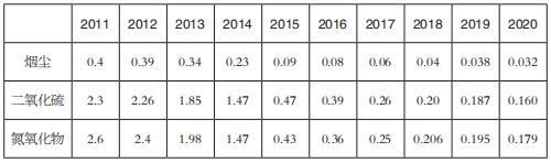 表10 2011~2020年單位火電發電量的排放量(單位:克/千瓦時)
