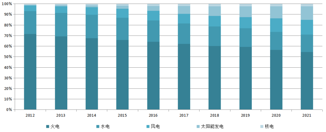 圖5 2012~2021年全國電力裝機結構