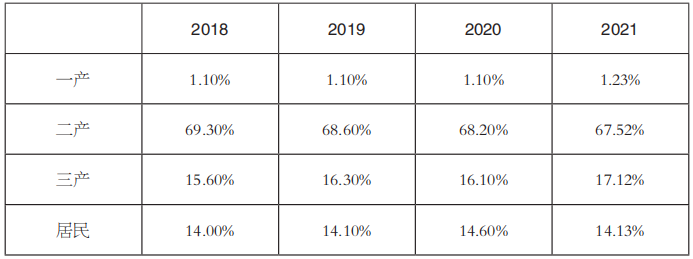 表2 2018~2021年全社會用電結構