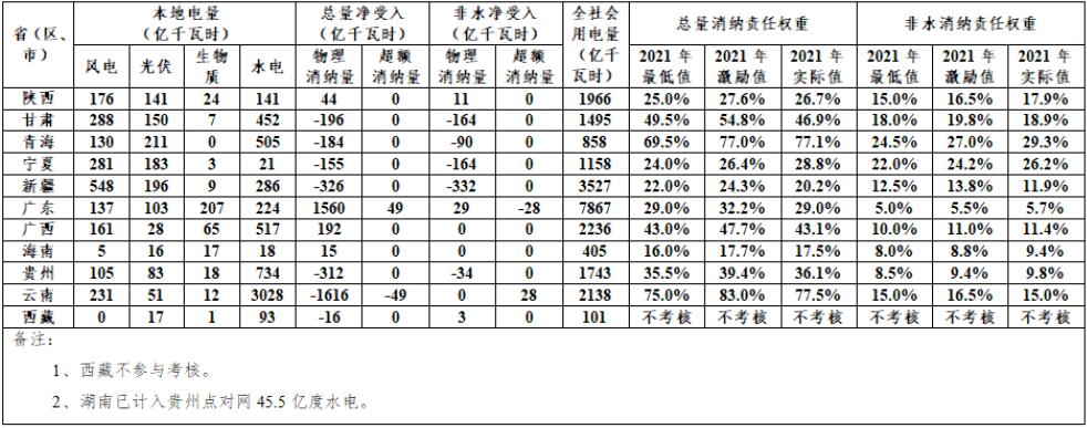 國家能源局關于2021年可再生能源電力消納責任權重完成情況的通報
