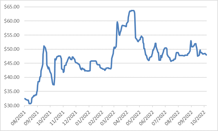 三季度,天然鈾市場(chǎng)動(dòng)態(tài)基本在預(yù)測(cè)的框架內(nèi)演變。美國(guó)(及全球多數(shù)國(guó)家)通脹指數(shù)居高不下,美聯(lián)儲(chǔ)分別在7月和9月再次加息75點(diǎn),試圖遏制通脹,導(dǎo)致美股從8月中開始轉(zhuǎn)向下跌,跌至9月底2020年以來(lái)的最低點(diǎn),各大股指跌幅高達(dá)15-20%。加拿大上市鈾投資基金斯普羅特(SPUT)是過去一年鈾價(jià)上漲的主要推手,三季度,受金融市場(chǎng)大環(huán)境影響,斯普羅特股價(jià)持續(xù)低迷,融資規(guī)模大幅減少,季度僅采購(gòu)175萬(wàn)磅(673噸鈾),較2021年三季度(4277噸鈾)、2021年四季度(4641噸鈾)、2022年一季度(4688噸鈾)、2022年二季度(1289噸鈾)采購(gòu)量大幅降低。三季度,俄烏局勢(shì)沒有給天然鈾市場(chǎng)帶來(lái)新的影響,之前分析的結(jié)論沒有變化,即美歐核電業(yè)主短期內(nèi)無(wú)法擺脫對(duì)俄核燃料的依賴,但正在加快去俄羅斯化的進(jìn)程