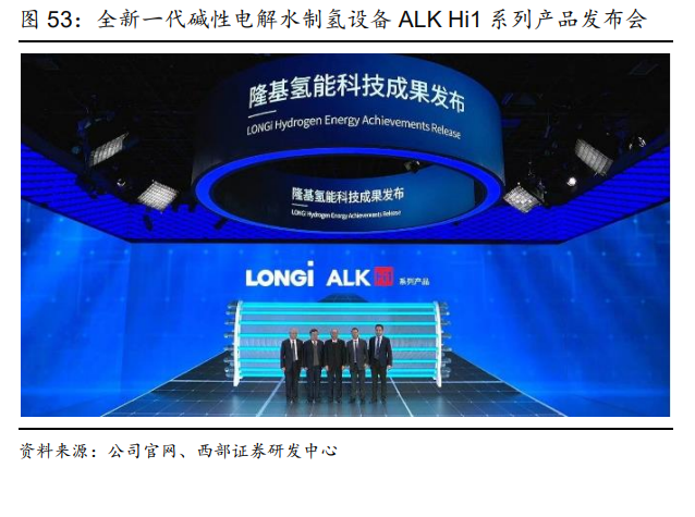 實施“綠電+綠氫”戰略,氫能業務蓬勃發展。光伏發電已成為全球最具經濟性的清潔能 源,“綠電+綠氫”將推動制氫成本 LCOH(單位制氫成本)的下降,同時有效克服可再生能 源間歇性、儲存性問題。隆基氫能提供的“綠電+綠氫”解決方案能全面覆蓋合成甲醇、合 成氨、鋼鐵冶煉、石油煉化等領域。隆基氫能作為領先企業,在 2022 年 5 月成功入圍中 石化首個萬噸級綠氫示范項目,為其提供分布式光伏和光伏地面電站的解決方案,并提供 綠氫生產裝備以及制氫相關解決方案。萬華化學與隆基綠能于 2023 年達成戰略合作,實 現產業優勢互補,助力“雙碳”目標實現。據證券之星披露,隆基綠能擬與可再生和清潔 能源開發商 Invenergy 合作,在美國俄亥俄州建設一處 5GW 光伏組件工廠。