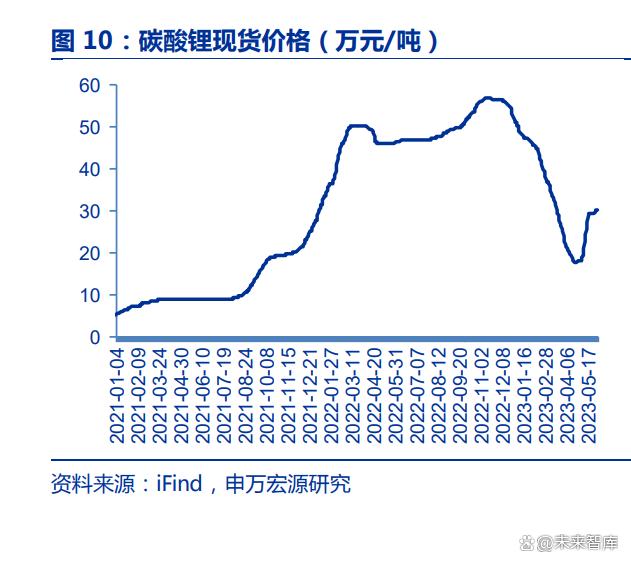 供需格局趨緩,推動鋰價快速下跌。供給端,在 2022 年高鋰價刺激下,各企業爭相 投資擴產,澳洲鋰礦擴產、南美鹽湖產能擴張、國內鋰資源開發加快。根據上海有色網數 據,中國碳酸鋰產能已有約 54 萬噸,產量 34 萬噸,同比增長 39.1%。需求端,新能源 汽車需求增速放緩導致對鋰資源需求放緩。同時,一季度消費者對于特斯拉等車廠的降價 預期致使觀望情緒發酵,進一步助推鋰需求放緩。即便近期觀望情緒有所減弱,難改供需 格局趨勢。根據天齊鋰業招股書,23 年精煉鋰供給將超過需求,并且未來 5 年供給過剩 情況將持續擴大。供過于求局面下,鋰價順應下跌。