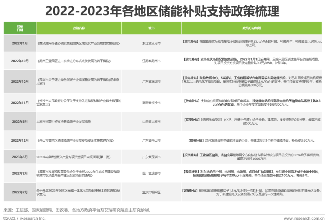 2022年能源局和發改委發布《“十四五”新型儲能發展實施方案》,方案中指出探索推廣共享儲能模式。鼓勵新能源電站以自建、租用或購買等形式配置儲能,發揮儲能“一站多用”的共享作用。