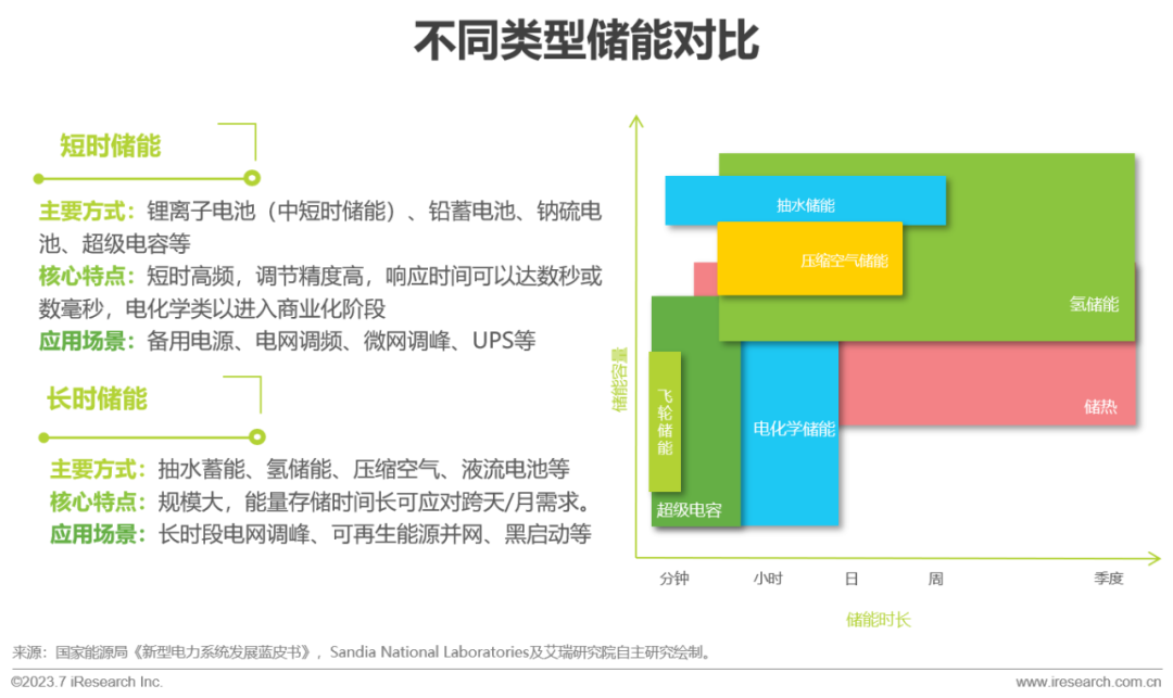 長短時儲能暫無明確定義區分。美國桑迪亞國家實驗室認為長時儲能是持續放電時間不低于4小時的儲能技術。美國能源部則認為長時儲能定義為持續放電時間不低于10小時,且使用壽命在15-20年的儲能技術。