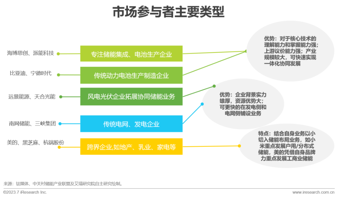 新能源的火熱帶動了儲能產業的快速發展,盡管儲能仍處于產業發展初期階段,商業模式和市場格局仍未定局。但市場已涌現各式參與者瓜分“蛋糕”。從動力電池廠商到食品互聯網企業跨界參與,市場玩家不斷涌入。市場參與者各有優勢。針對儲能行業發展正處于供需端適配過程。