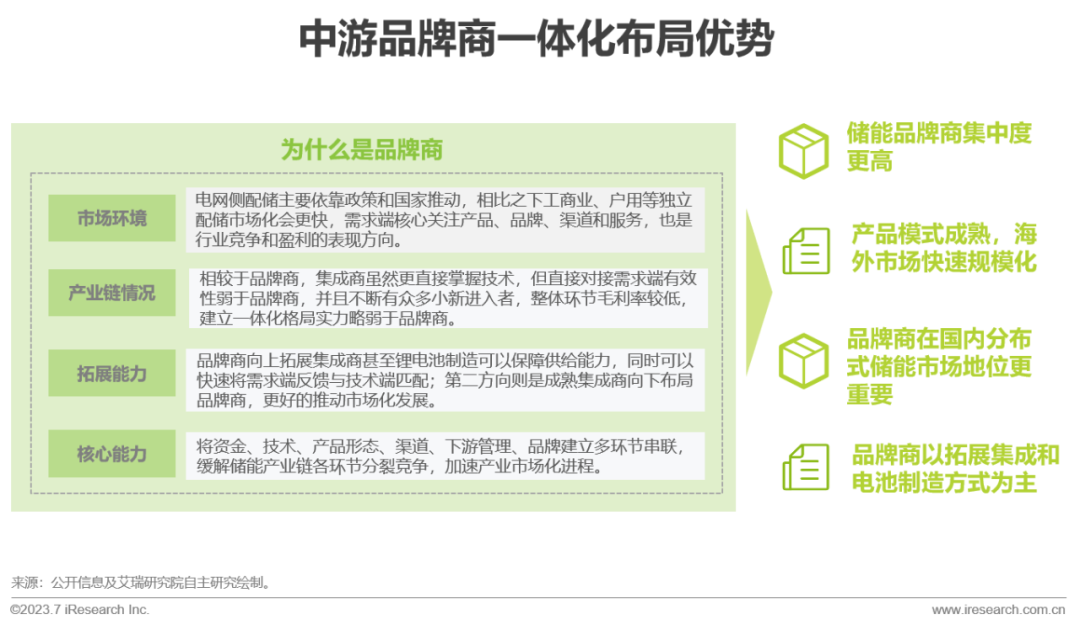 行業的發展終究要以市場為主,玩家把握市場端的打法也是產業逐漸成熟化的標志。品牌商作為鏈接制造端和市場端的核心環節,直接將上端集成產品通過設計開發及管理對標售賣給下游B、C端客戶,然后搭配一系列的供應渠道、售后服務等實現商業化發展。未來的資本認可度會逐步增高。以品牌商為核心想向產業鏈上下游布局會成為行業集中化發展的主要形態。