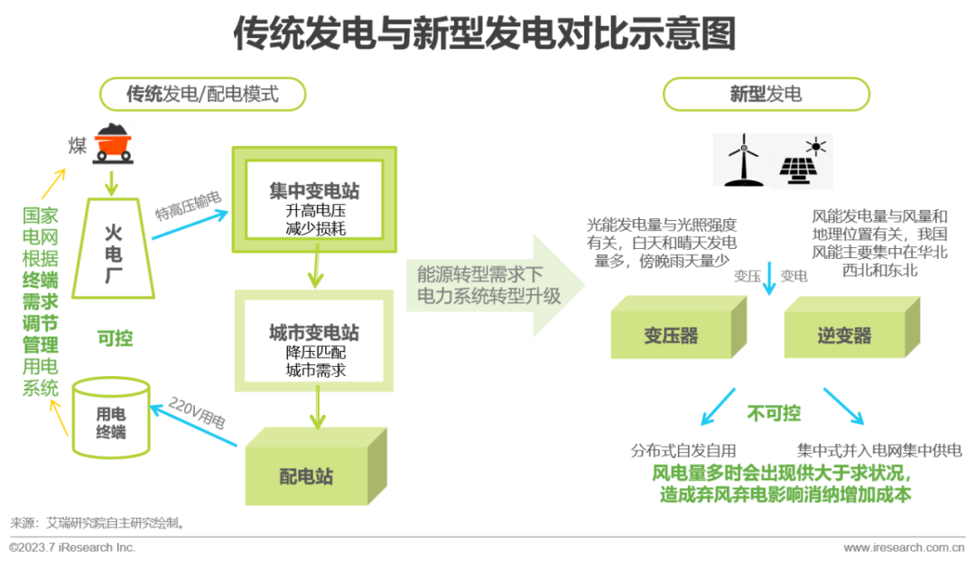 新舊電力系統轉型升級下,能源的可控化和可儲化成為發展的核心。傳統發電主要依靠燃煤(小部分有燃氣等)。現階段由于全球氣候危機和環境危機影響,雙碳和能源轉型正火熱發展中,以風光發電為主流的新型發電方式開始逐漸替代傳統發電。