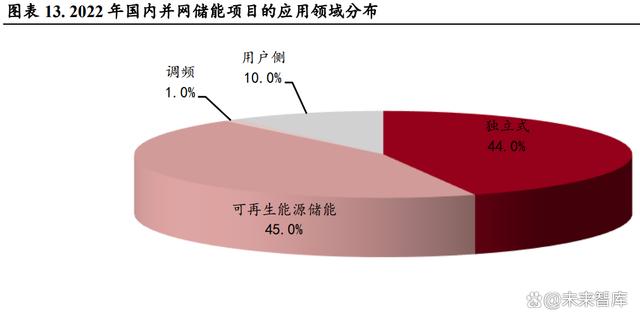 我國(guó)作為世界第一大儲(chǔ)能市場(chǎng),應(yīng)用場(chǎng)景主要集中在發(fā)電側(cè)和電網(wǎng)側(cè)。從 2022 年已并網(wǎng)項(xiàng)目的應(yīng)用 領(lǐng)域來(lái)看,可再生能源儲(chǔ)能項(xiàng)目和獨(dú)立式儲(chǔ)能項(xiàng)目貢獻(xiàn)了絕大多數(shù)增量,分別占比達(dá) 45%和 44%, 用戶(hù)側(cè)儲(chǔ)能項(xiàng)目?jī)H占比 10%,但其中還包括 3 個(gè) 10 小時(shí)鉛炭?jī)?chǔ)能項(xiàng)目。