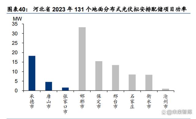 河北案例:以河北省發改委公示的河北省 2023 年地面分布式光伏擬安排項目來看,共計 302 個 項 目 ,總 規模 1.43GW ,其中 131 個 項目 承諾 按要 求配 置儲 能,總規模 104MW/204MWh。需要注意的是,131個承諾按要求配儲的地面分布式光伏項目,均位于 無開放容量區,而在可開放容量范圍內的 171個項目均無需承諾配置儲能。