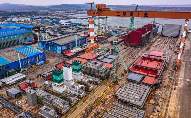 某大型液化天然氣船段生產作業區(無人機照片)。李信君攝(新華社)