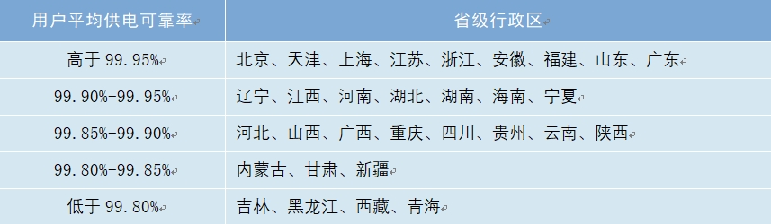 表1 2023年省級行政區用戶平均供電可靠率分布情況