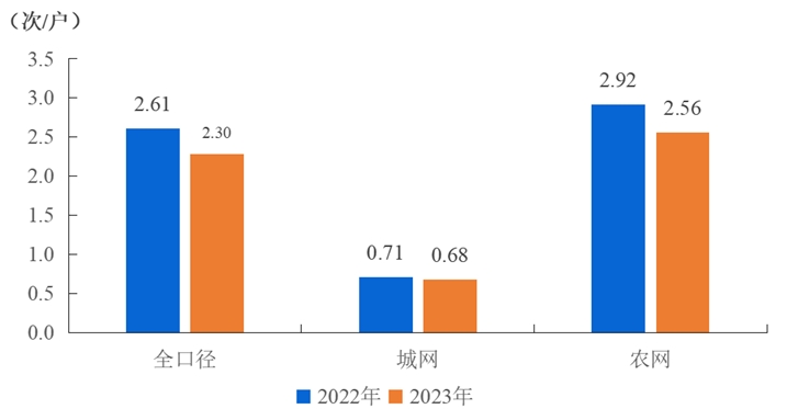 全國用戶平均停電頻率2.30次/戶,同比減少0.31次/戶,其中,城網0.68次/戶,農網2.56次/戶。城網地區與農網地區相差1.88次/戶。