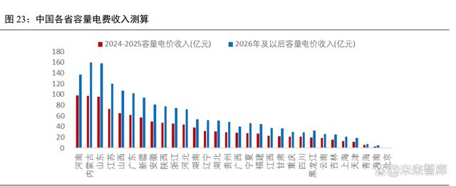 (3)煤電機(jī)組最大出力;煤電機(jī)組可獲得的容量電費(fèi),根據(jù)當(dāng)?shù)孛弘娙萘侩妰r(jià)和機(jī)組申報(bào)的最大出力確定,假設(shè) h 最大出力按額定容量的 100%。 按照各省煤電容量電價(jià)水平及煤電裝機(jī)容量(按容量電價(jià)適用率90%)測(cè)算,2024-2025年全國(guó)煤電容量電價(jià)收入預(yù)計(jì) 1121 億元,2026 年以后達(dá)到 1792 億元以上(不考慮煤電裝機(jī)變動(dòng)情況,以及按