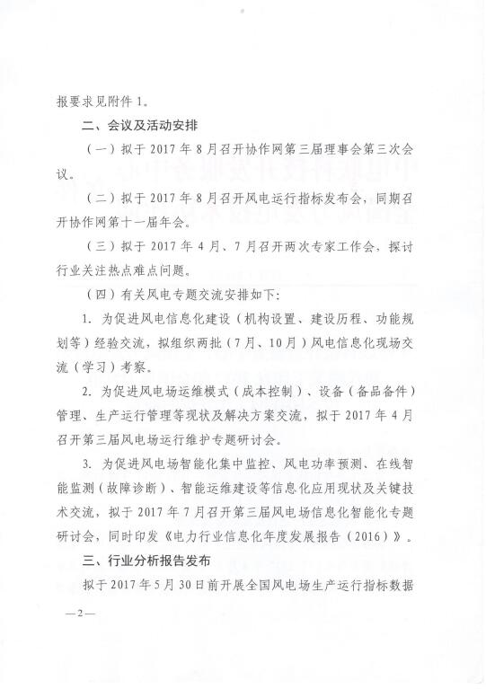 關(guān)于印發(fā)2017年全國(guó)風(fēng)力發(fā)電技術(shù)協(xié)作網(wǎng)工作安排的通知